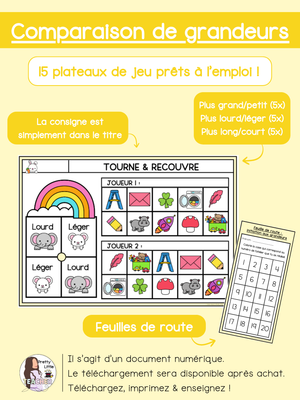 đ Ces plateaux de jeu sur l'initiation aux grandeurs sont amusants, engageants et proposent aux enfants une maniĂšre ludique d'apprendre les grandeurs.