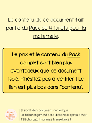 Ce produit fait partie du Pack des 4 livrets d'activités de maternelle.