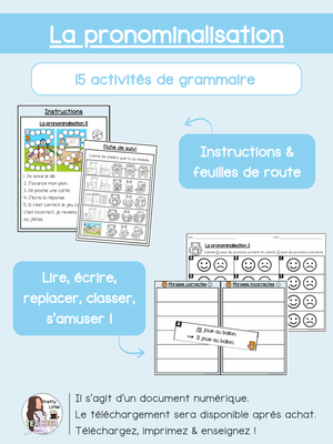 đ€©Â Je vous ai prĂ©parĂ© plus de 70 pages qui regroupent 15 jeux incroyables sur la pronominalisation (il, elle, ils, elles, nous, vous) qui vous attendent pour s'entrainer à la grammaire.