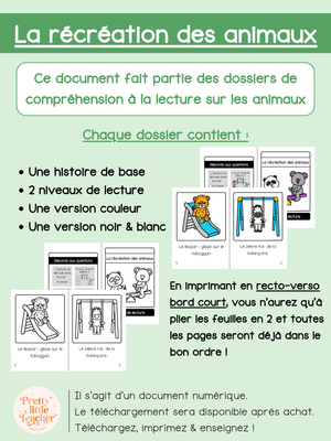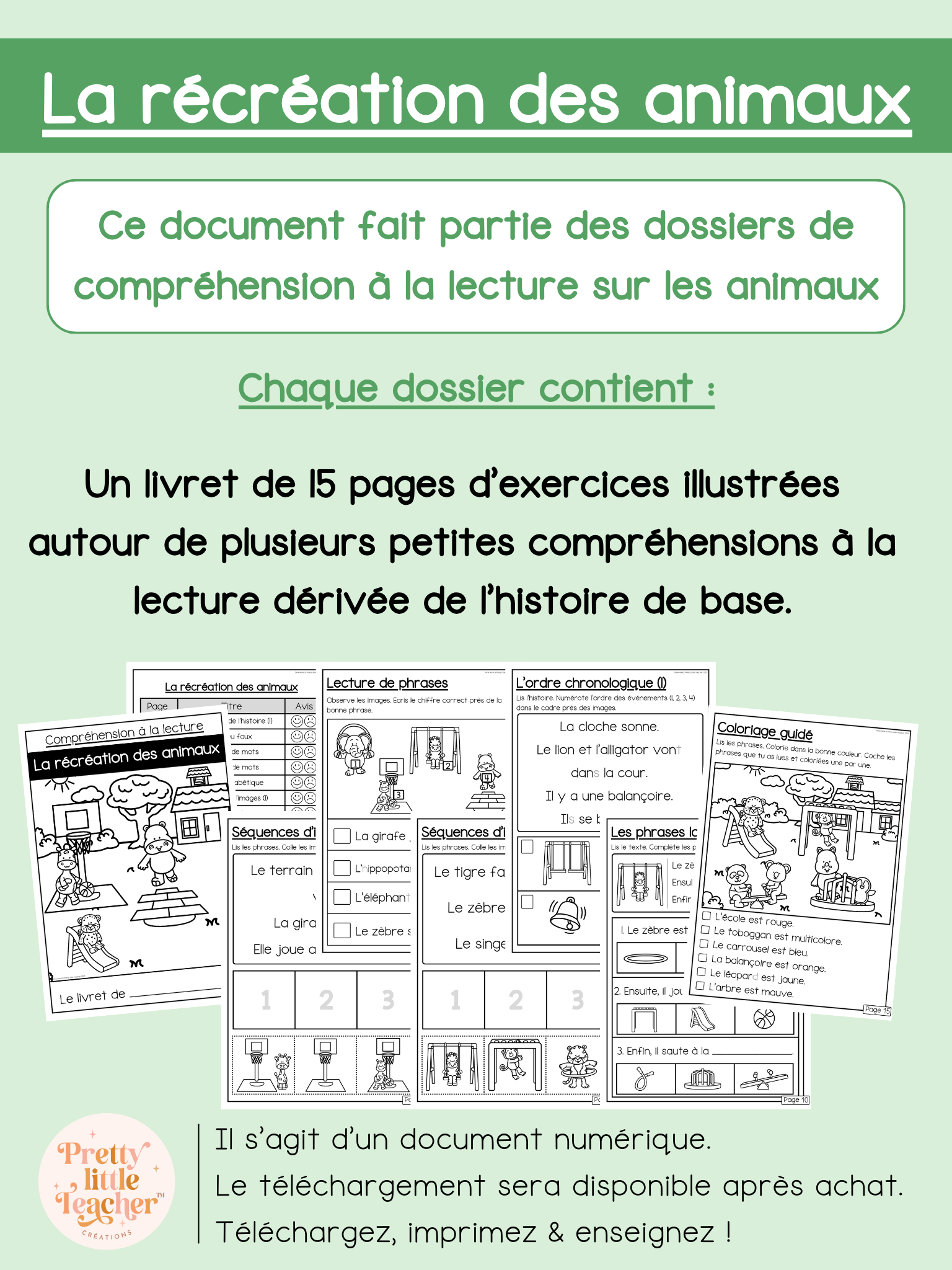 🤩 Je vous ai préparé un dossier de compréhension à la lecture progressive unique destiné aux enfants du cycle 2 sur le thème des animaux 🐯