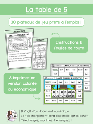 đ Ces plateaux de jeu sur la table de 5 sont amusants, engageants et proposent aux enfants une maniĂšre ludique de s'entrainer aux calculs de multiplication.