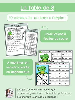 đ Ces plateaux de jeu sur la table de 8 sont amusants, engageants et proposent aux enfants une maniĂšre ludique de s'entrainer aux calculs de multiplication.