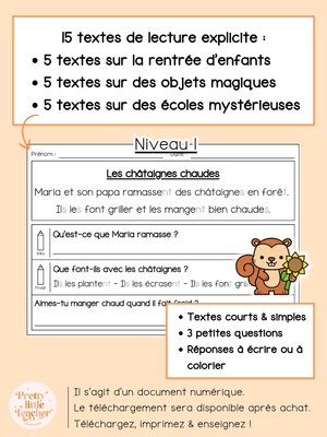 đ Je vous ai prĂ©parĂ© 15 comprĂ©hension Ă la lecture sur l'automne de niveau 1 qui vous attendent pour entrainer vos loulous aux questions - rĂ©ponses.
