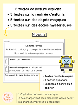 ✏️ Je vous ai préparé 15 compréhension à la lecture sur l'école de niveau 1 qui vous attendent pour entrainer vos loulous aux questions - réponses.