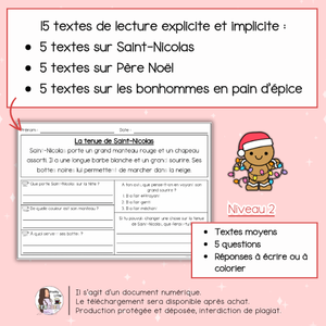 15 textes de lecture sur Saint-Nicolas, Père Noël et les Bonshommes en pain d'épice.