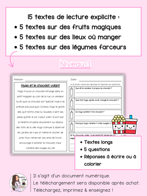 đ Je vous ai prĂ©paré 15 comprĂ©hension Ă la lecture sur la nourriture de niveau 3 qui vous attendent pour entrainer vos loulous aux questions - rĂ©ponses.