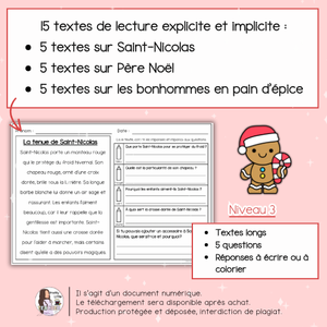 15 textes de lecture sur Saint-Nicolas, Père Noël et les Bonshommes en pain d'épice.