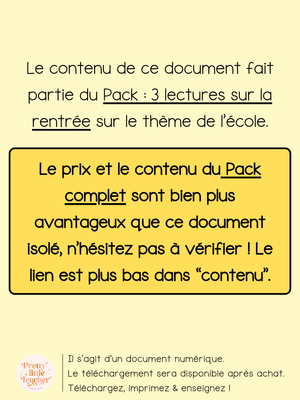 Ce produit fait partie du Pack : 3 livrets de lecture sur la rentrée - cliquez ici pour le voir.