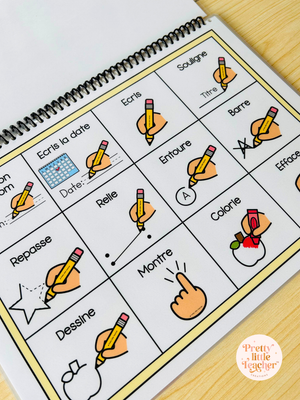 ⚠Le document contient des consignes accompagnées de leur pictogramme en écriture script, majuscule et cursive.