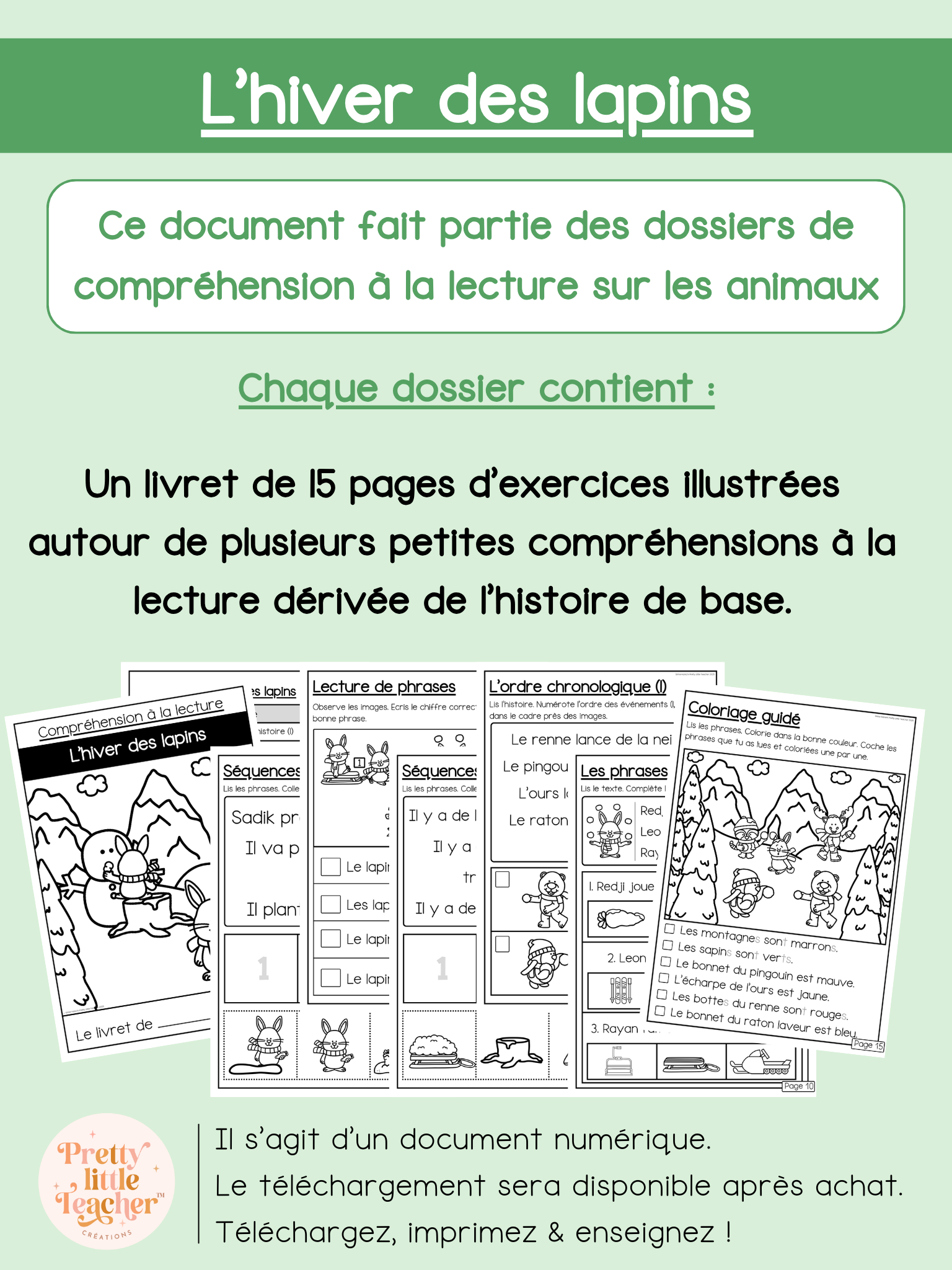 đ€© Je vous ai prĂ©parĂ© un dossier de comprĂ©hension Ă la lecture progressive unique destinĂ© aux enfants du cycle 2 sur le thĂšme des animaux đŻ
