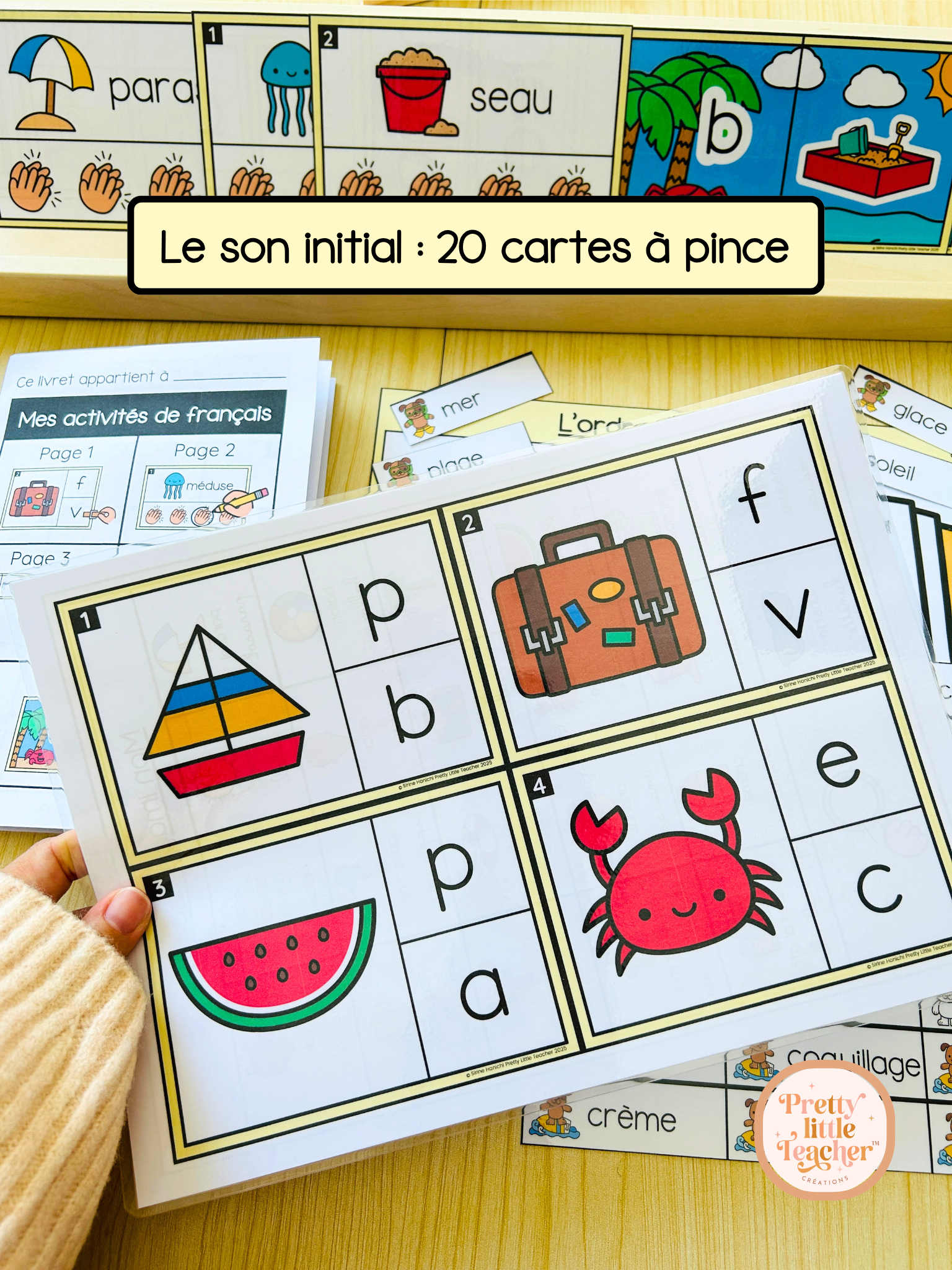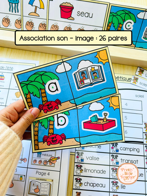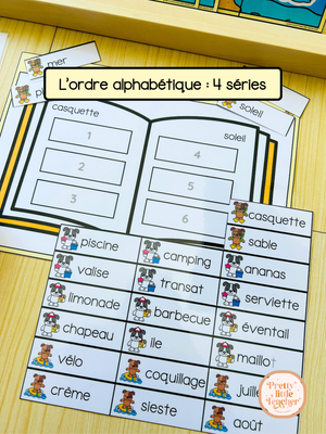 ☀️ Je vous ai préparé 5 ateliers de jeu sur le thème de l'été pour aller à la rencontre de ses premiers mots de vocabulaires thématiques. Ce document vous propose une version en écriture script minuscule et en majuscule. 🎁