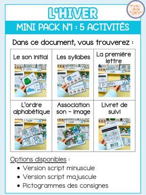 đ Je vous ai prĂ©parĂ© 5 ateliers de jeu sur le thĂšme de l'hiver pour aller Ă la rencontre de ses premiers mots de vocabulaires thĂ©matiques. Ce document vous propose une version en Ă©criture script minuscule et en majuscule. đ