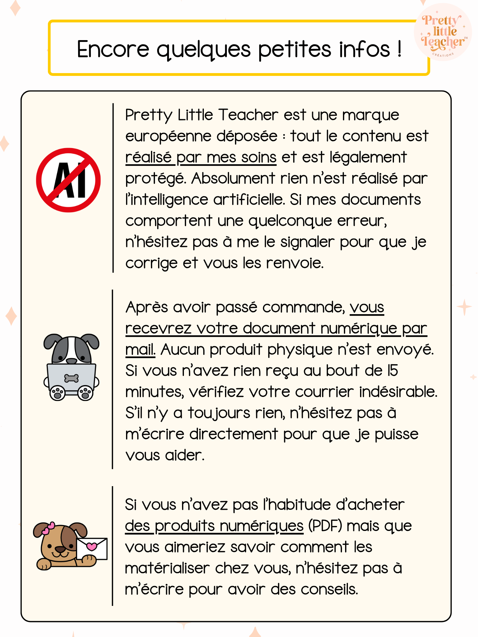 - FacilitĂ© dâutilisation : TĂ©lĂ©chargez, imprimez, et câest prĂȘt ! (Sauf si vous aimez dĂ©couper & plastifier đ)