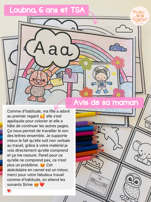 ✨ Le document contient 4 versions des 26 lettres de l'alphabet ainsi que 26 illustrations à devoir replacer selon leur son initial. Le thème du carnet est sur la Saint-Valentin mais tous mots utilisés sont communs et n'ont aucun rapport avec le thème.