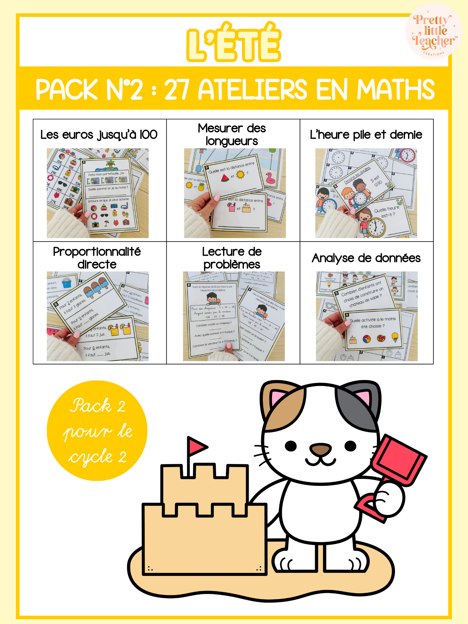 ☀️ Je vous ai préparé 27 jeux incroyables sur le thème de l'été qui vous attendent pour s'entrainer aux mathématiques, choisissez le pack qui vous plait. Les packs vous proposent une version en écriture script et une version en écriture conforme (cursive).