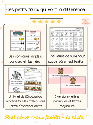 😻 Je vous ai préparé 28 activités incroyables qui vous attendent pour travailler plusieurs compétences en français. Les packs vous proposent une version en écriture script minuscule et une version en script majuscule.