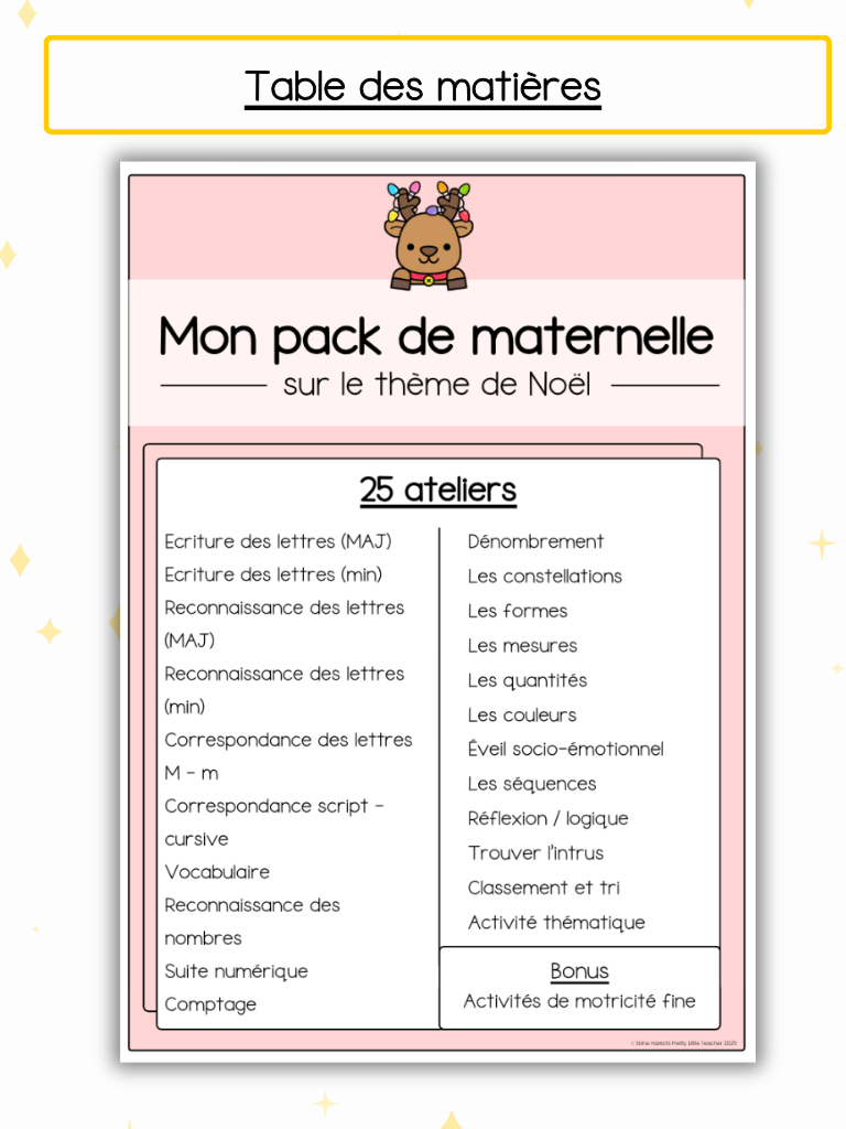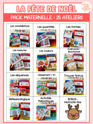 😻 Voici les matières abordées dans ce Pack Maternelle sur le thème de Noël :