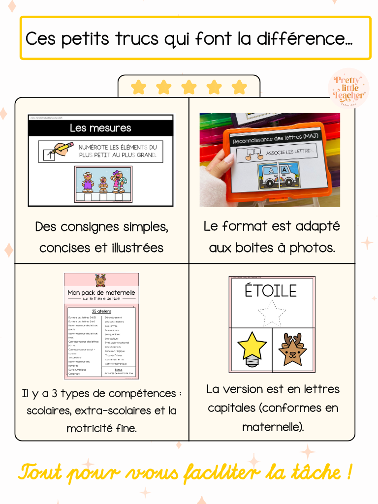 - Gain de temps précieux : Plus besoin de préparer vos activités ; le matériel vous donne de quoi faire !