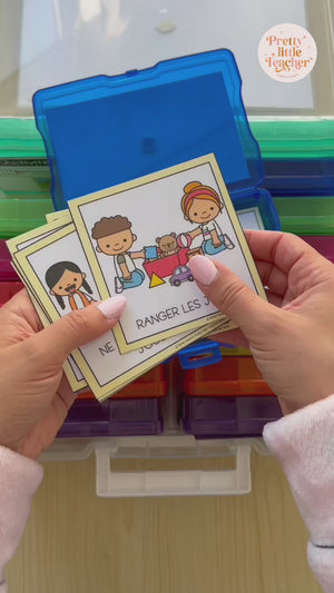 Il vous suffit d'imprimer, plastifier et découper le fichier numérique et c'est prêt ! C'est tout 😎 (oui oui, vraiment). Les instructions pour les enfants sont contenues dans le fichier. 😋