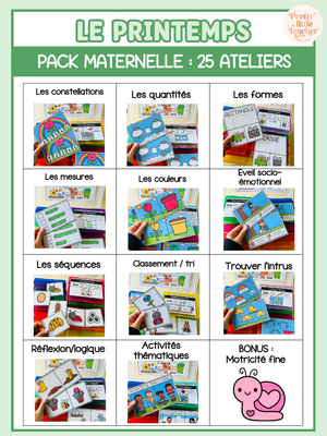 đ» Voici les matiĂšres abordĂ©es dans ce Pack Maternelle sur le thĂšme du printemps :Â