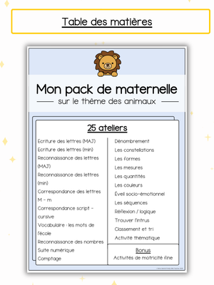 đ» Voici les matiĂšres abordĂ©es dans ce Pack Maternelle sur le thĂšme des animaux :Â