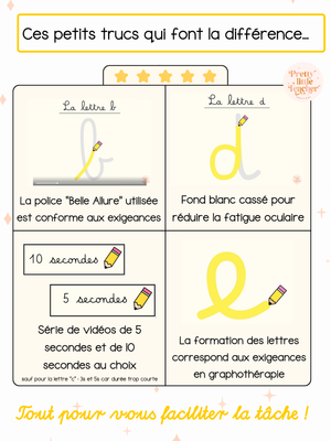Ces vidéos sont sur un fond crÚme pour réduire la fatigue oculaire lors du visionnage. Un crayon et un trait jaune, pour le thÚme du mois de septembre, accompagnent le mouvement.